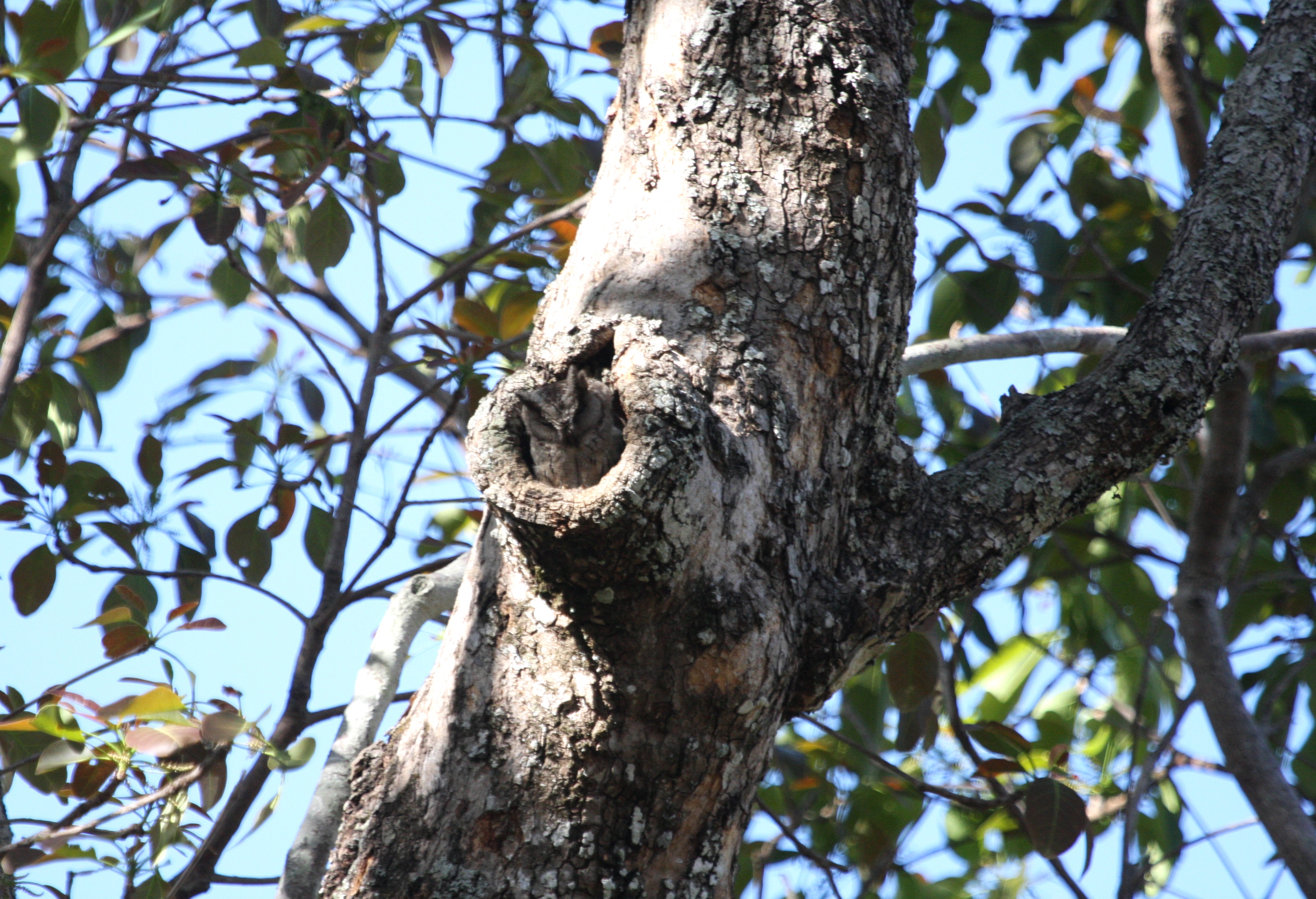 We had multiple sightings of a Brown fish owl by the same kere. On the way to the safari and a short way from the camp, an Indian scops owl roosted in a burrow high up – we looked for it each time we passed and sighted it twice. And on the way back to camp, a Racket tailed drongo consistently showed up at one spot. For that matter, the pitta turned up in the same place for multiple sightings, as did one particular Asian paradise flycatcher individual. Incidentally, VV and I had some discussion around differentiating juvenile and female Asian paradise flycatchers in the field. Both are rufous and broadly similar looking, but the juvenile male has a jet black throat, and a blue eye-ring. The female has a paler throat and lacks the eye-ring.