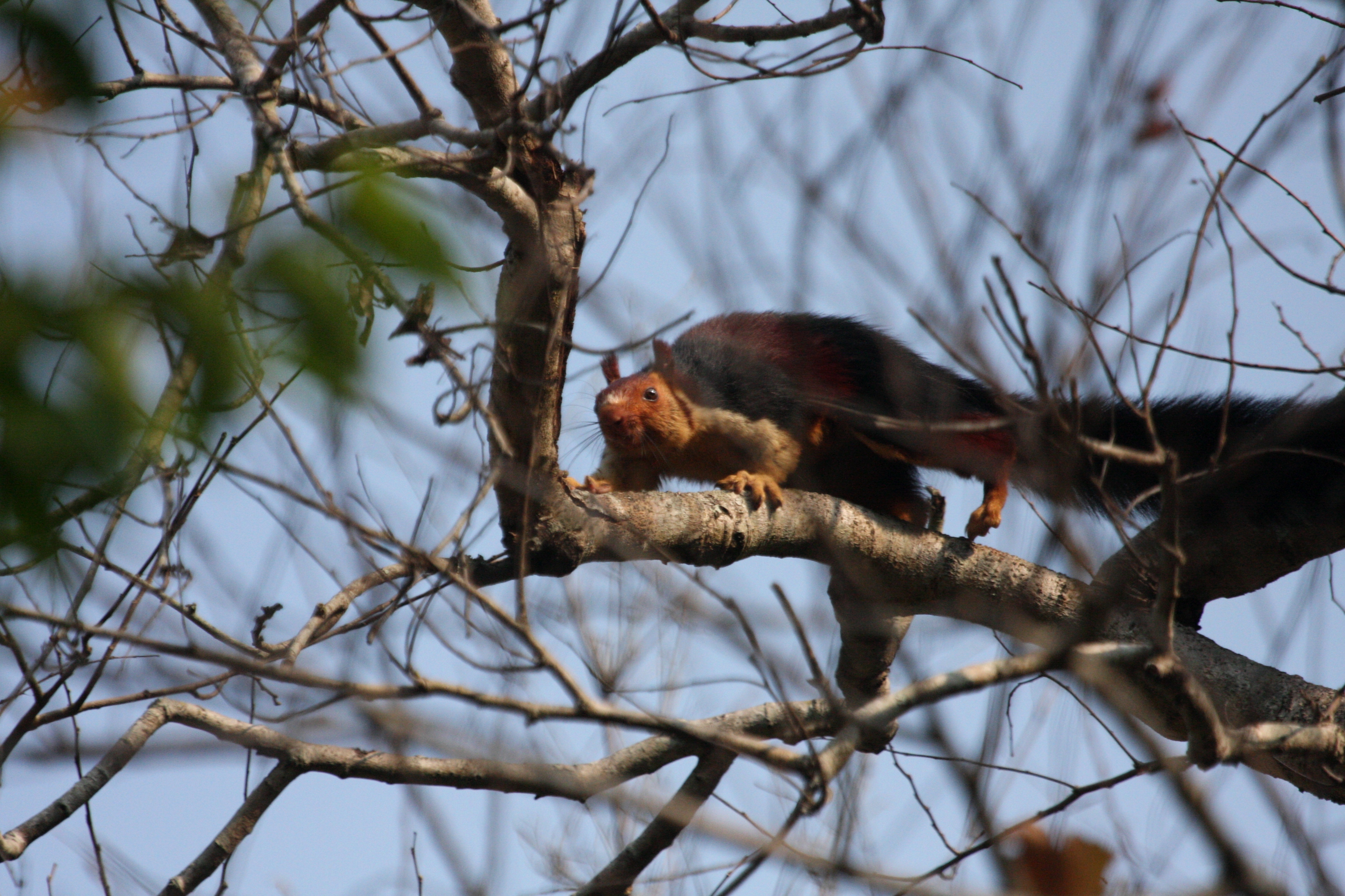 The eight-kilometer drive through Pandian estate to the Vellimalai Murugan temple was pleasant as ever and very productive as far as birding was concerned. We entered the estate in the evening after the labour-force had departed and had the route to ourselves. Our luck was on a roll this time around. We had searched for but failed to find Lion-tailed macaque the last time around and here they were, a whole troop just off the road. I had mentioned a flashing tree shrew sighting which only GK got a clear look at in January and now I got a clear sighting of Anathana ellioti – the Southern tree shrew. We also saw the White-bellied treepie in the upper reaches. We saw this bird multiple times on this trip – once here and thrice on the Anaikullipallam track. SS was unwell and had elected to stay back, and he got the privilege of sighting Draco dussumieri – the Southern flying lizard – at the FRH.