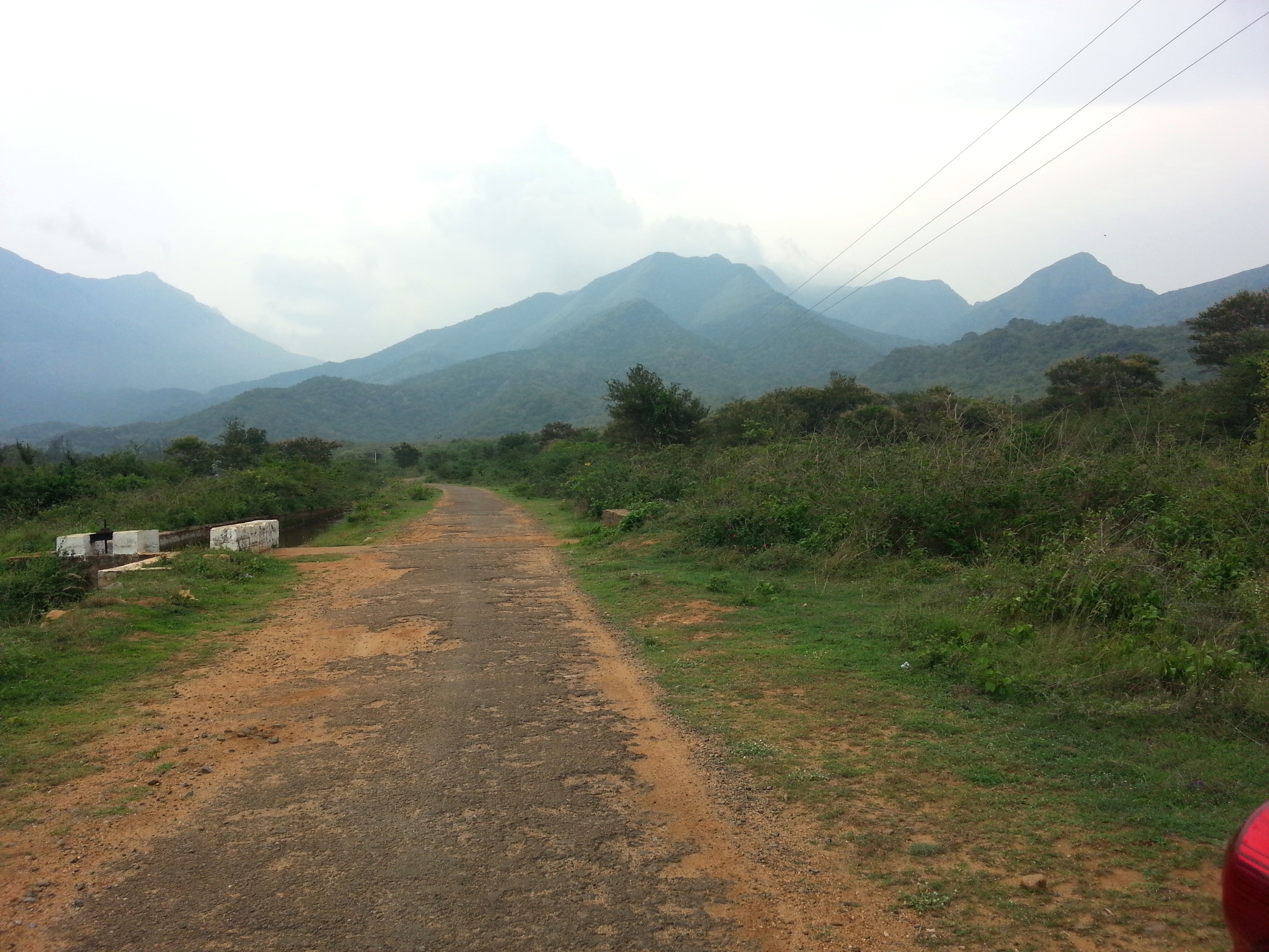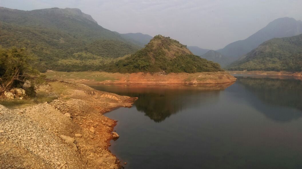 View from the Servalar dam. The Kodamadi FRH is sited somewhere around the conical hill.
