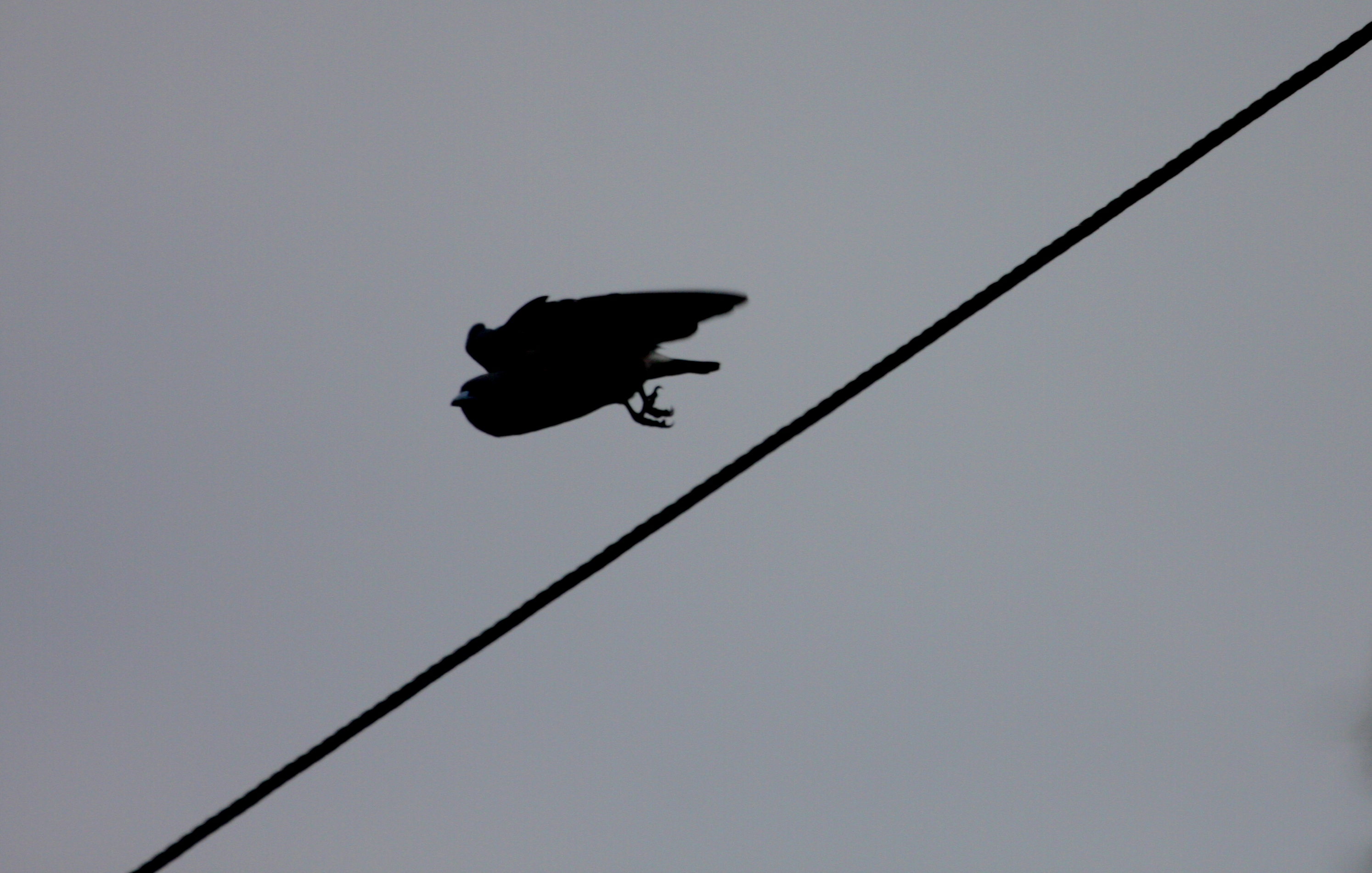 Since driving on these roads is banned after dark, we took a public bus on impulse at about eight thirty in the evening, to Karaiyar and back. The driver spoke of leopard and sloth bear sightings almost on a daily basis on this stretch, but we had no such luck. GK spoke to some tribals employed as watchers and they recommended driving along the Servalar route early next morning to look for leopards. Again no luck. However we saw Jungle babbler, White-headed babbler, Common iora, Black eagle, White-bellied drongo, Tailor bird, Ruddy mongoose, Brahminy kite, Brown-headed barbet, Grey junglefowl, Tufted langur, nightjar (possibly Savanna) and peafowl (the latter being especially numerous all over the lower ranges). And heard Common hawk cuckoo and coucal. We also spotted a malkoha-like bird which I am unable to identify – it appeared dark with a white terminal band on its tail. In the waters of the Karaiyar dam was a swimming herd of buffaloes – I initially assumed they were domestic animals, but a tribal watcher later told GK they were wild – perhaps a feral herd. An Indian scops owl called persistently after dark around the FRH without us being able to spot it. Sambar belled once in alarm late in the evening.