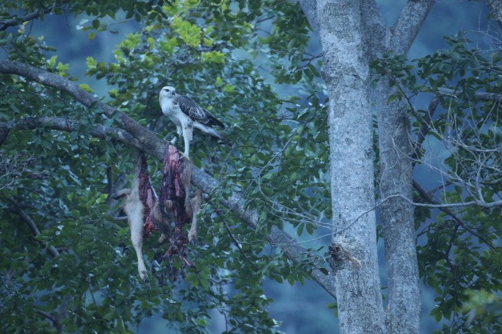 Published December 15, 2017 at 1642 × 1095 in Trip Report: Shivaliks/Rajaji N.P. C44A2628 Changeable hawk eagle scavenging off leopard’s kill at dusk ← Previous Next →