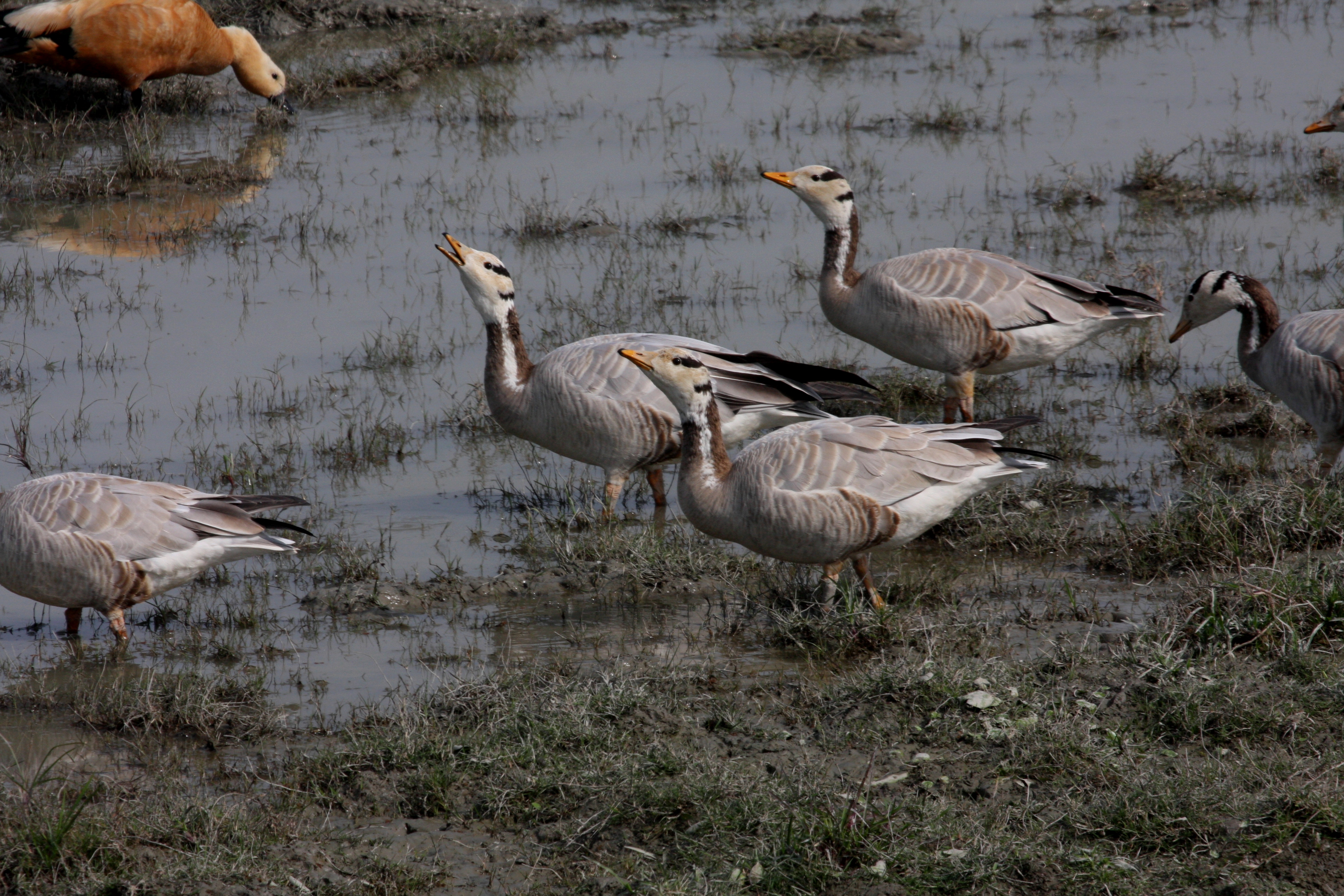 There were enormous flocks of Eurasian tree sparrow (or maybe Russet sparrow) in the lantana thickets. Vultures (& eagles on occasion) were seen overhead several times but we were unable to ID them. Plumbeous and White-capped water redstart were seen by the streams and rivers. In and around Kasaan were several flocks of Streaked laughingthrush. We spotted what appeared to be a Brown fish owl in flight once.